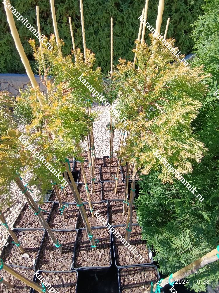 Изюминка сорта – особенный золотистый оттенок хвои, давший название растению - Золотой дождь.